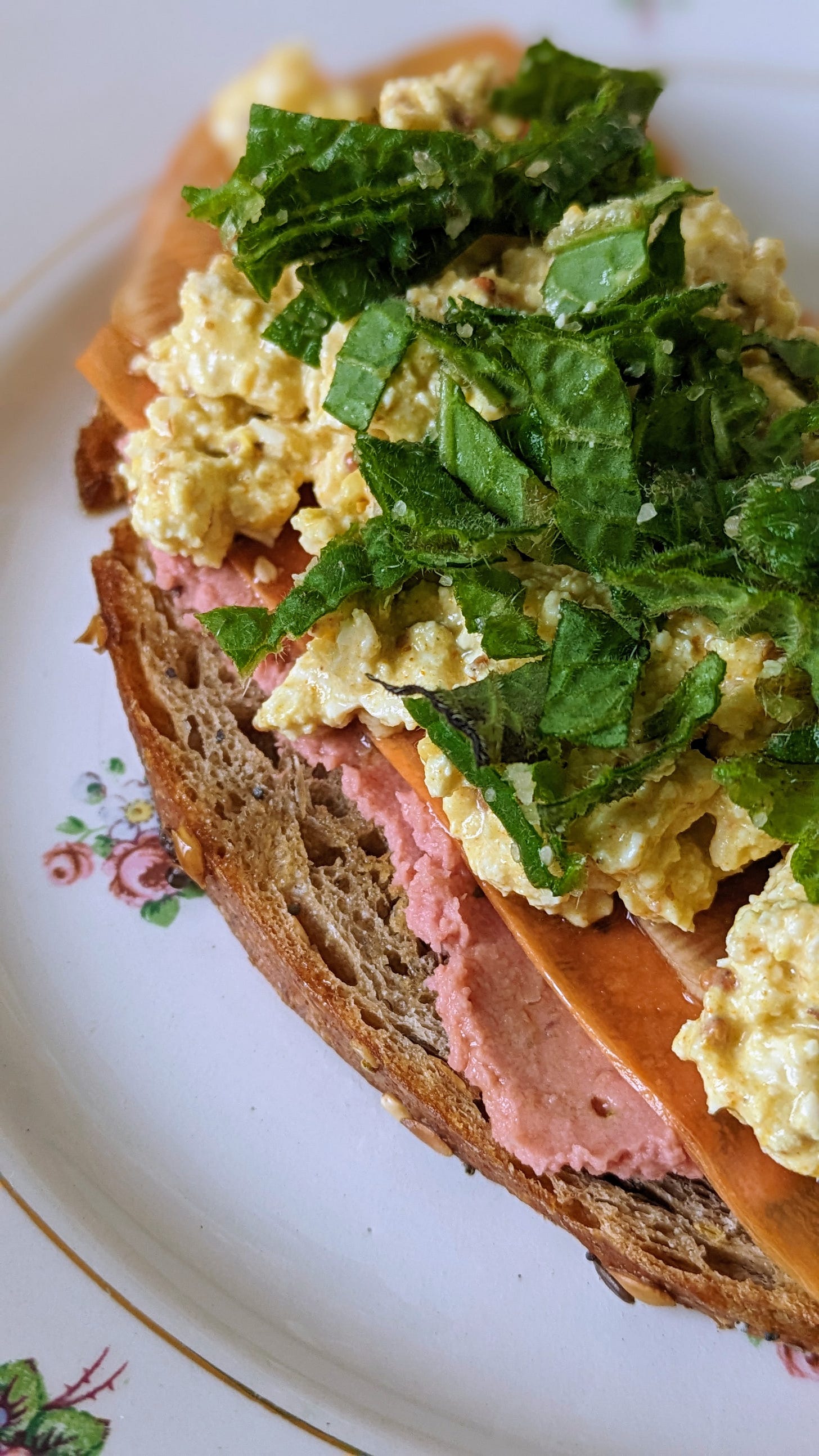 Le tofu brouillé est ma préparation favorite pour le quotidien surtout à partir des beaux jours : welcome sandwich, tartines et onigirazu (un sandwich japonais dont je vous parlerais bientôt...)